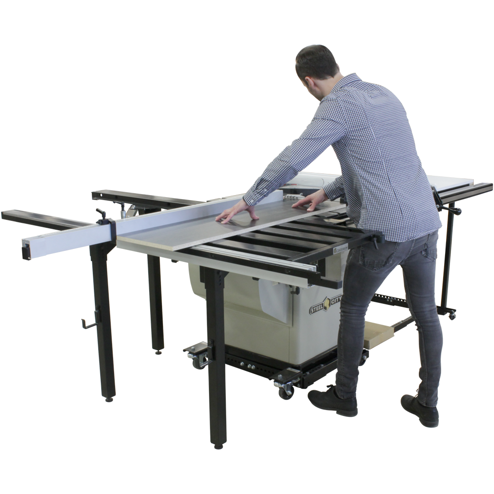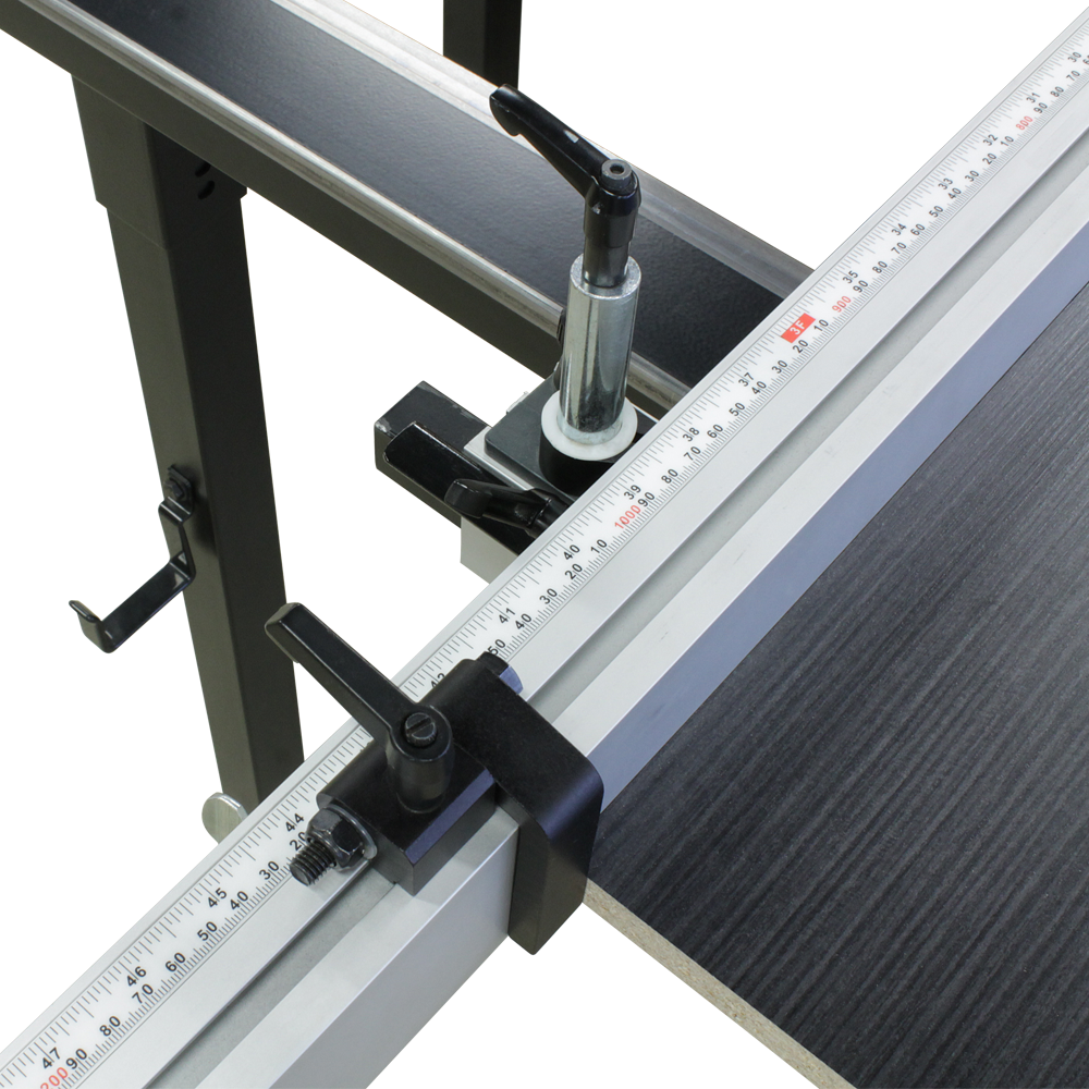 - La table coulisse sur roulements à billes et peut être rapidement verrouillée grâce à un pratique levier de blocage lors du chargement de gros panneaux