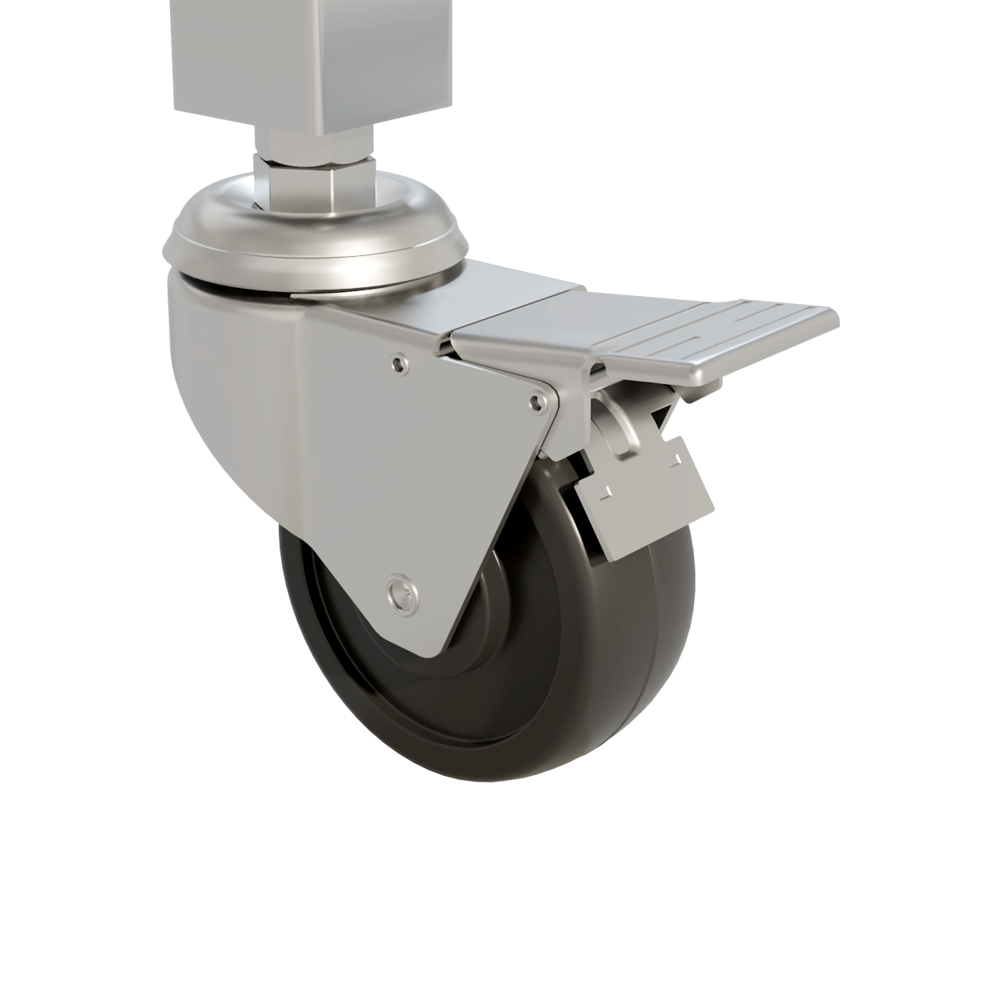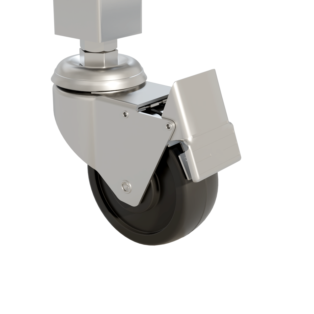 • Des roulettes pivotantes et bloquantes de 3"(75mm) dia x 1"(25mm) de large assurent un déplacement sécuritaire
