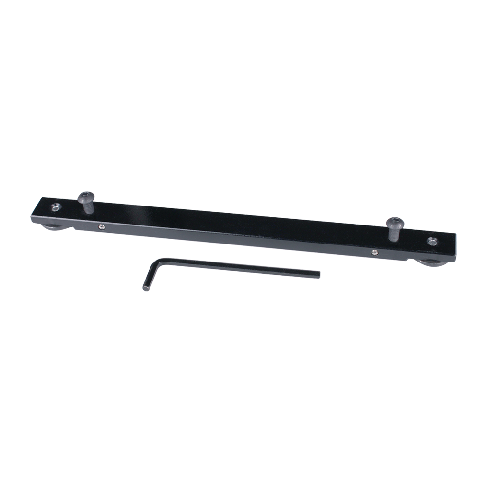- La barre de guidage de 25mm (10-7/8") de longueur x 19mm (3/4") de largeur x 9,5mm (3/8") d’épaisseur est munie de deux rondelles de 23mm (29/32") de diamètre (une à chaque bout) afin de retenir de façon sécuritaire le guide à tenonner sur la table (démontables si désiré)