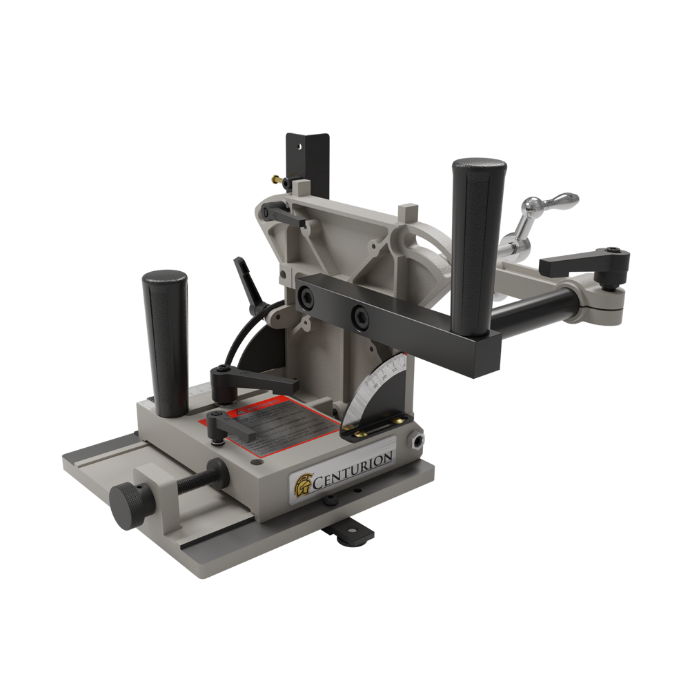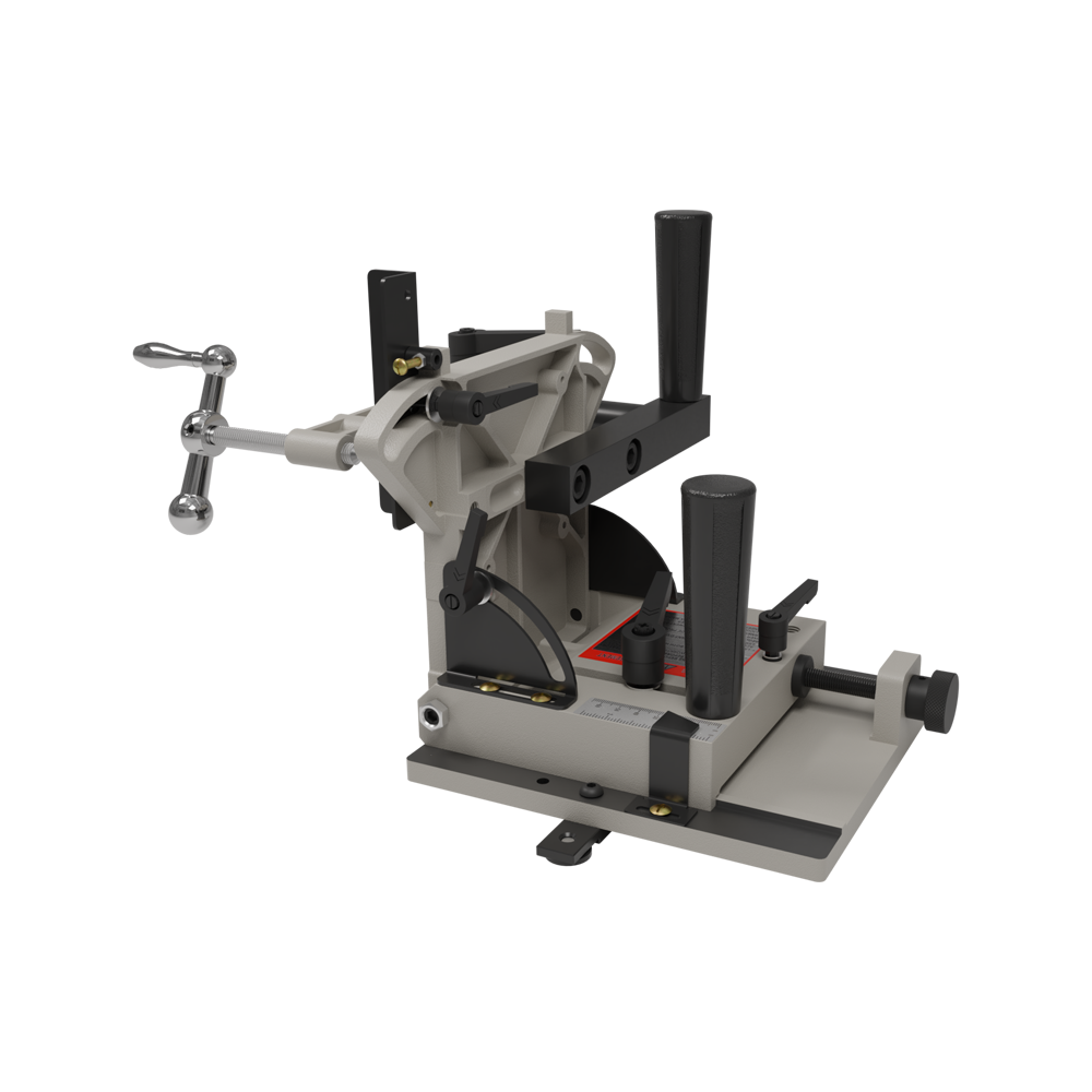 - Versatile, la course de son plateau est de 2-½"(6,3cm) et sa largeur de 5-¼"(13,3cm) permet d’y fixer des pièces de différentes dimensions jusqu’à une épaisseur de 3-¼"(8,5cm) et de les usiner à des angles allant de 90° à 45° autant au niveau frontal que latéral