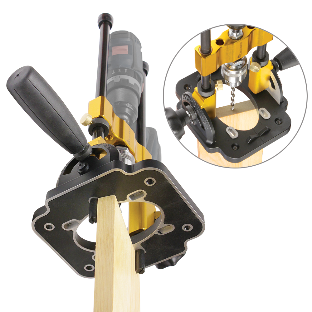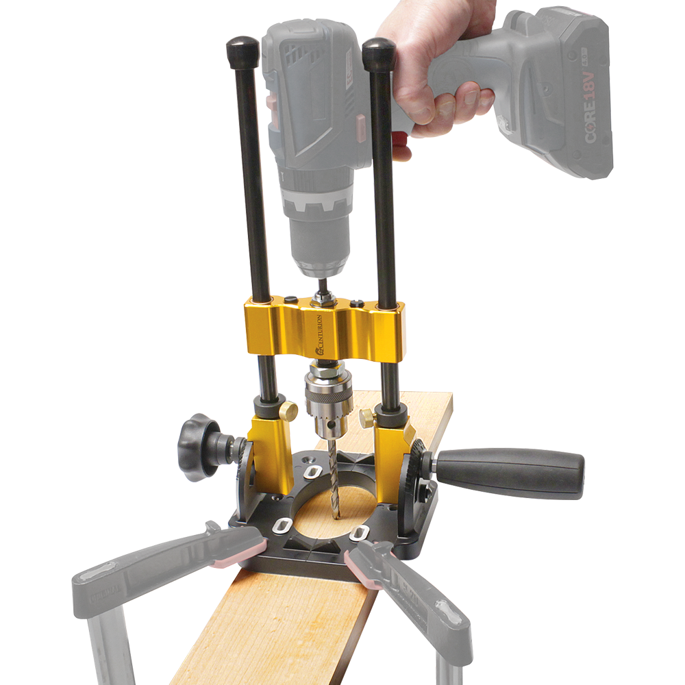 En attendant d’avoir le budget ou encore l’espace, ce guide de perçage portatif Centurion devrait pouvoir vous dépanner dans le cas où vous devez effectuer des perçages perpendiculaires à 90° ou à angle.