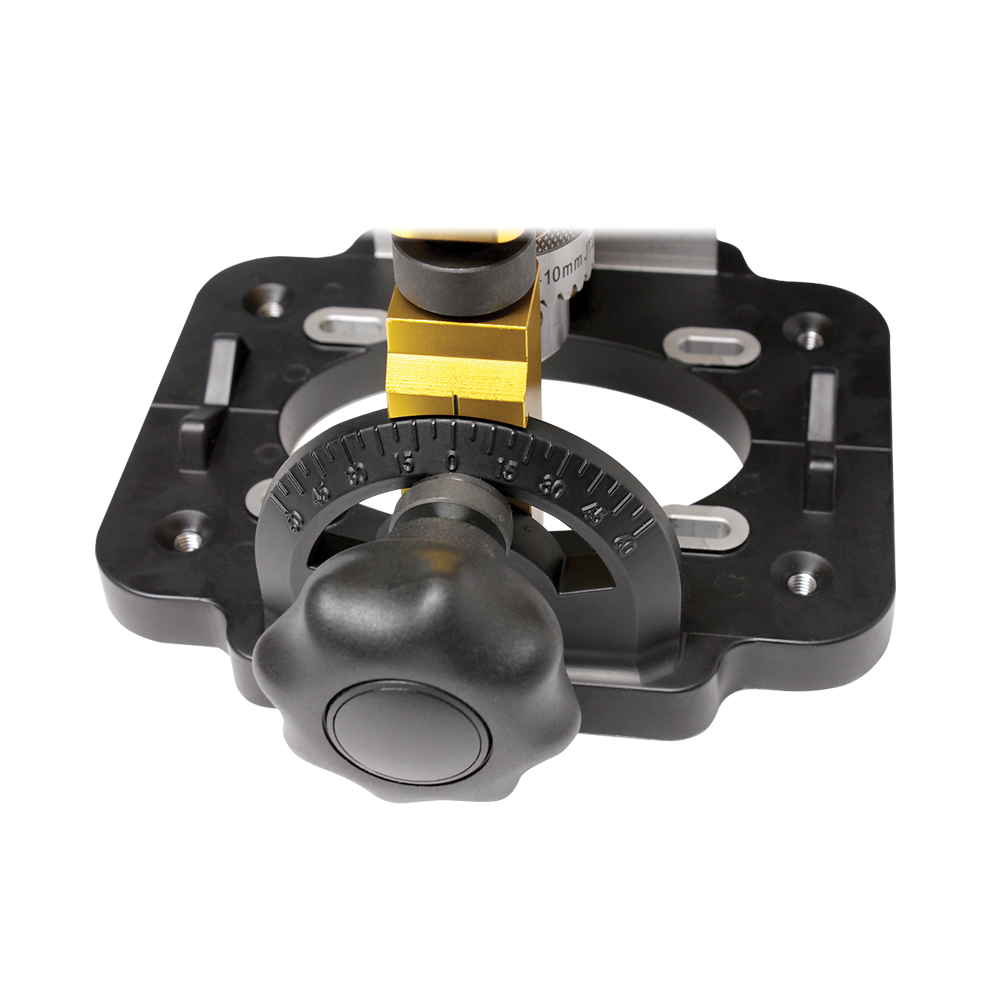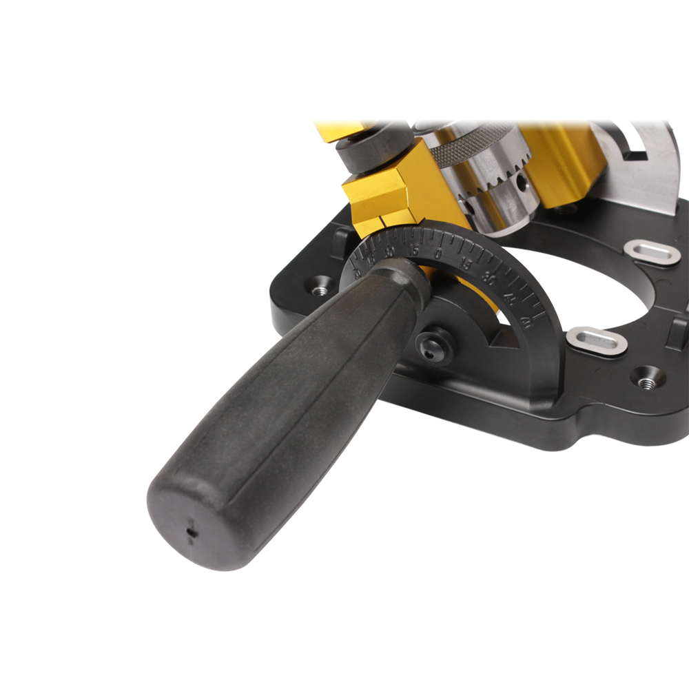 - Réglée à 90 degrés, l’unité de perçage produit des trous parfaitement perpendiculaires. Elle peut être ajustée à n’importe quel angle à partir de -60 /0/+60 degrés. Un bouton et une poignée auxiliaire sont fournis pour verrouiller et fixer la position d’angle et faciliter la manipulation