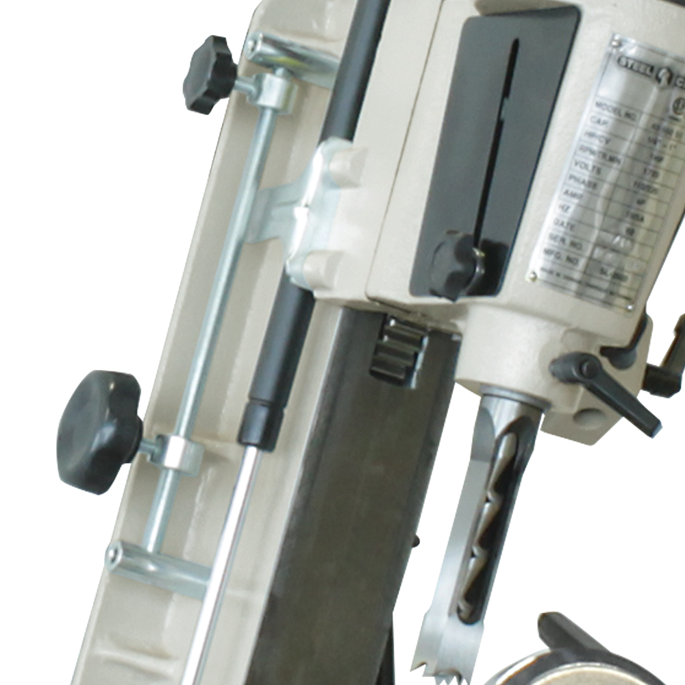 - Bâti en fonte d’acier: table, guide, colonne et tête