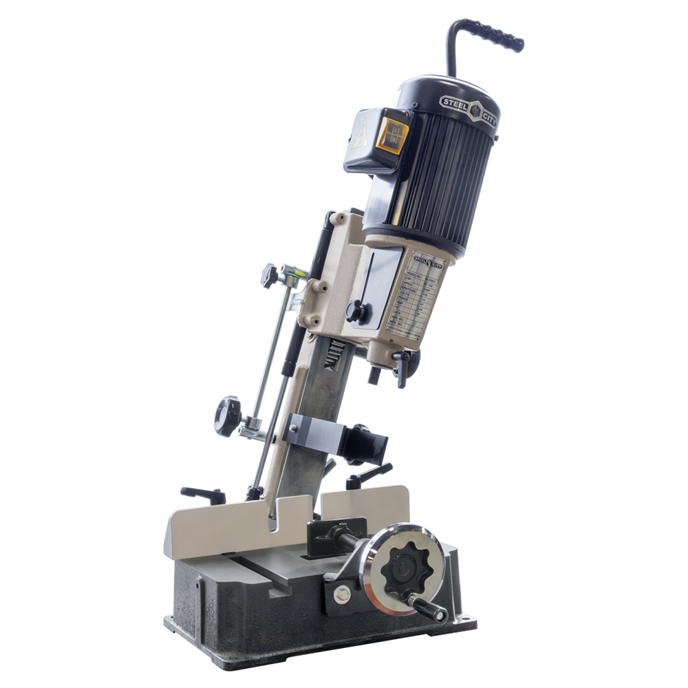 - Comprend une butée ajustable pour la pièce de travail, un étau à manivelle et une serre de retenue montée sur la colonne.