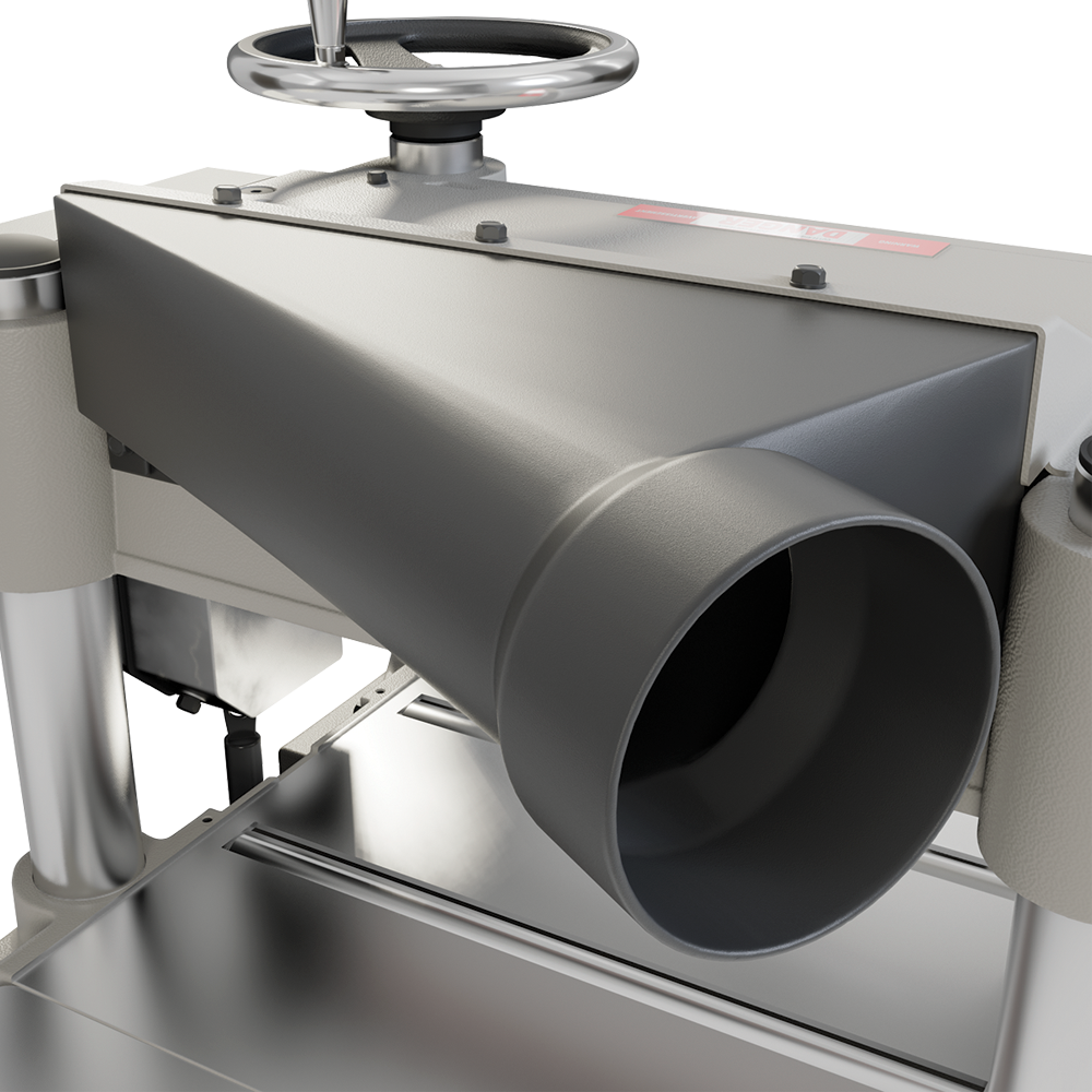 - Un cylindre à gaz facilite le réglage et l'abaissement du mécanisme de planage grâce au volant de grand diamètre