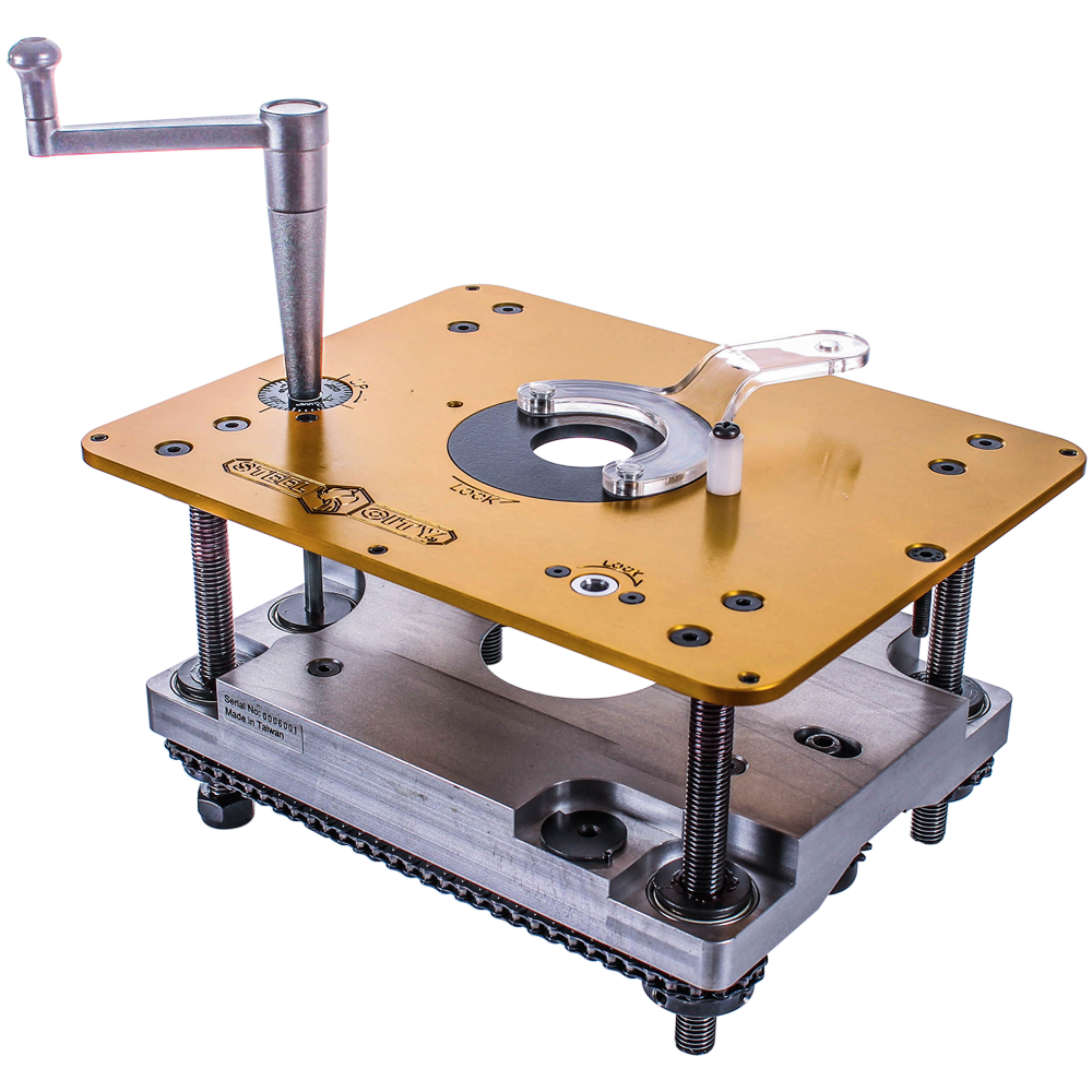 - Élévateur pour toupie standard offrant précision d’exécution et facilité d’utilisation