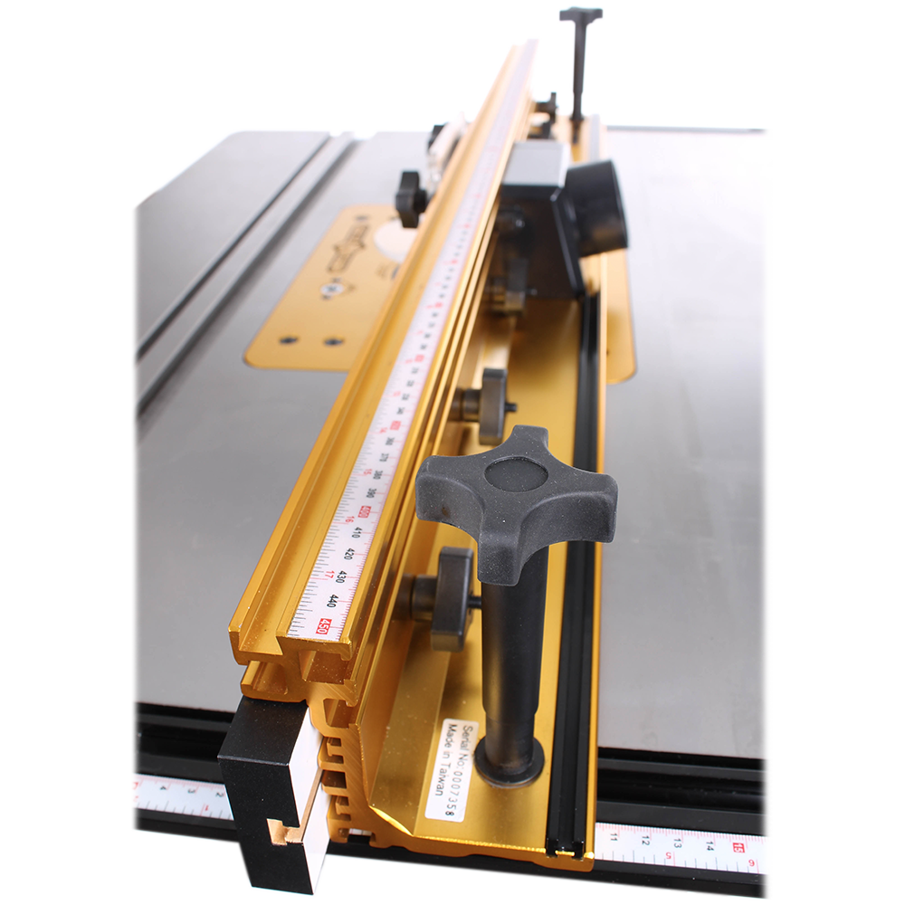 - Guide parallèle en aluminium 36” réglable sans outil avec buse d’aspiration et protecteur transparent